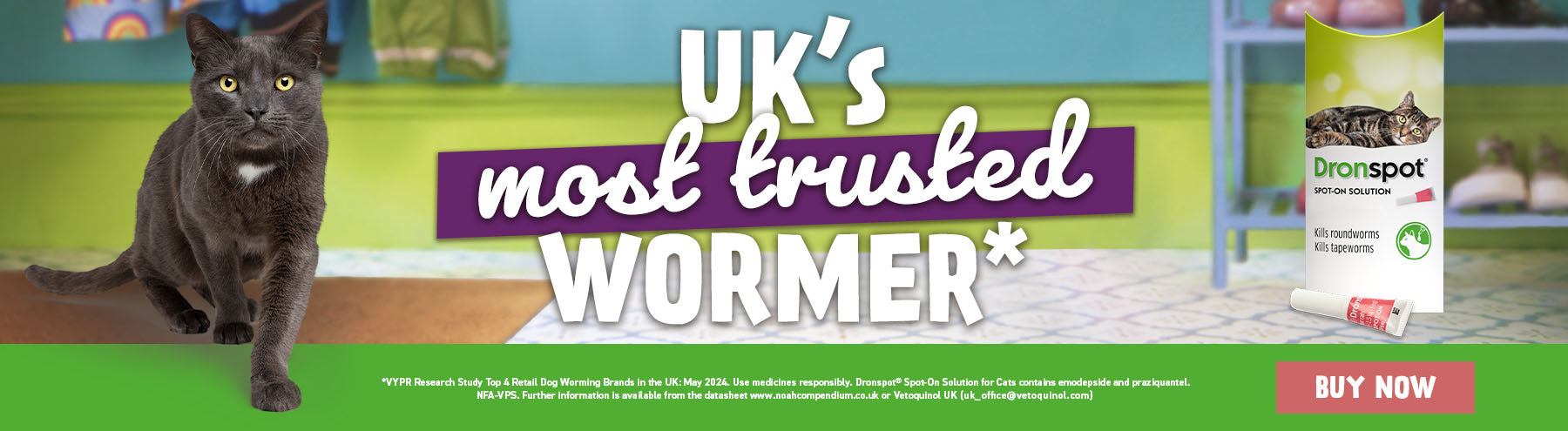 Dronspot supply a range of products to help combat the issue of fleas, ticks and worms in cats. Specified by size of cat, the application kills every type of intestinal worm commonly found in the UK. With a simple application process and no need of a prescription, Dronspot are your go-to solution for cats of all sizes.