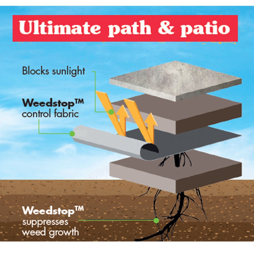 This Weedstop™ Ultimate premium woven fabric is designed to suppress weeds for up to 15 years, making it ideal for use under paving and patios. It also works effectively under decking, gravel, decorative stone, in greenhouses, and across other landscaping projects.