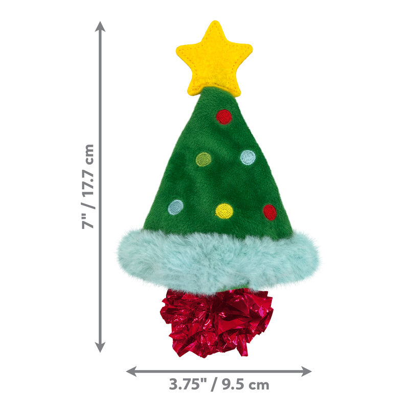 This holiday tree tempts kitties with an irresistible crackling call to play and a crinkle ball on an elastic tether for tug-and-capture fun—enhanced with KONG Premium North American catnip.