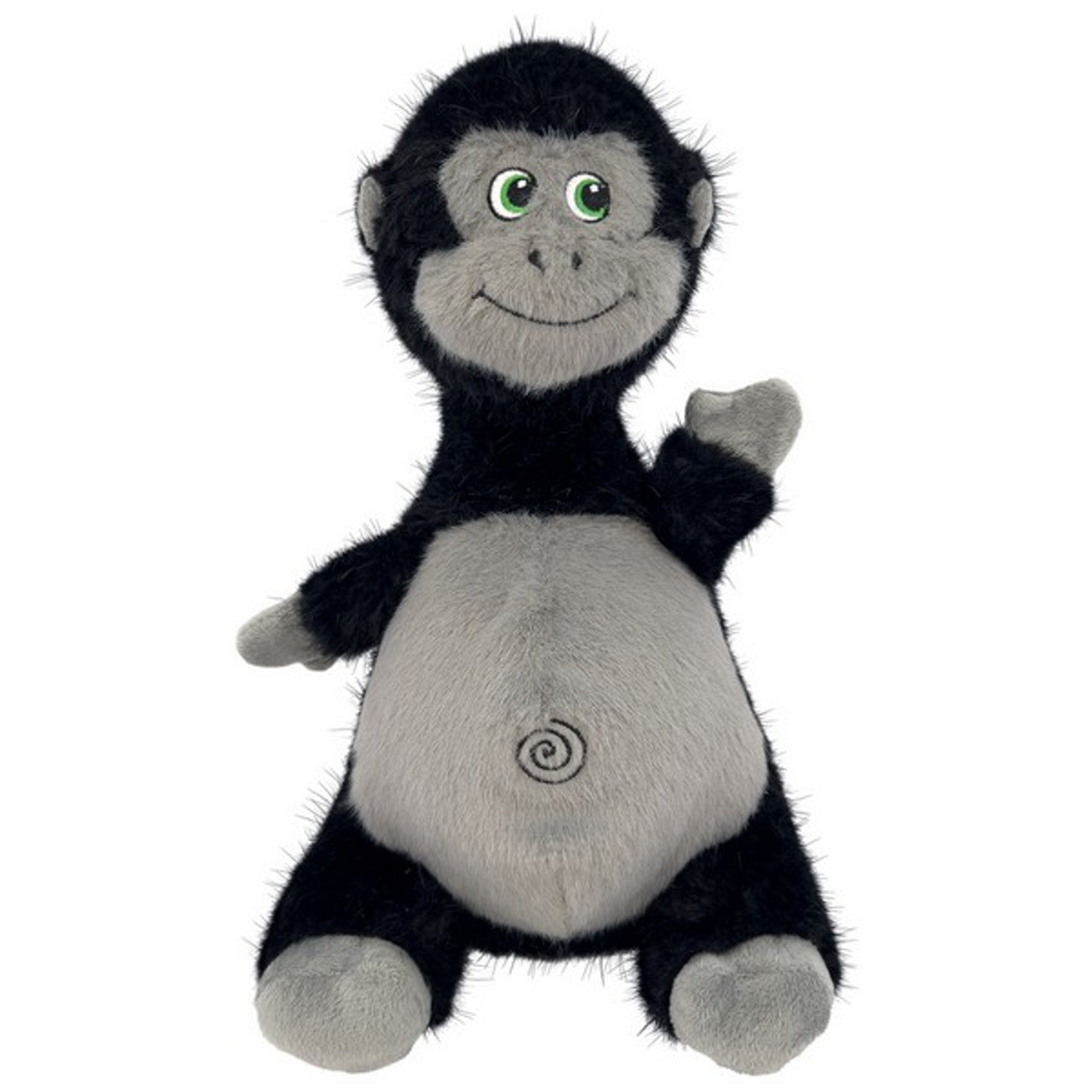 KONG Knots Belly Gorilla is soft and cuddly on the outside with a strong, durable rope ball on the inside making its belly round and weighty. This dense internal skeleton rope ball adds heft and movement that entices instinctual thrashing, flinging, and light chewing. A squeaker in this gorilla’s head piques dogs’ interest and adds excitement to play sessions. Knots Belly Gorilla is also ideal for dogs who like to carry their toys, as well as for naptime snuggles. Have fun watching which way your dog likes to engage with this multifunctional toy!
