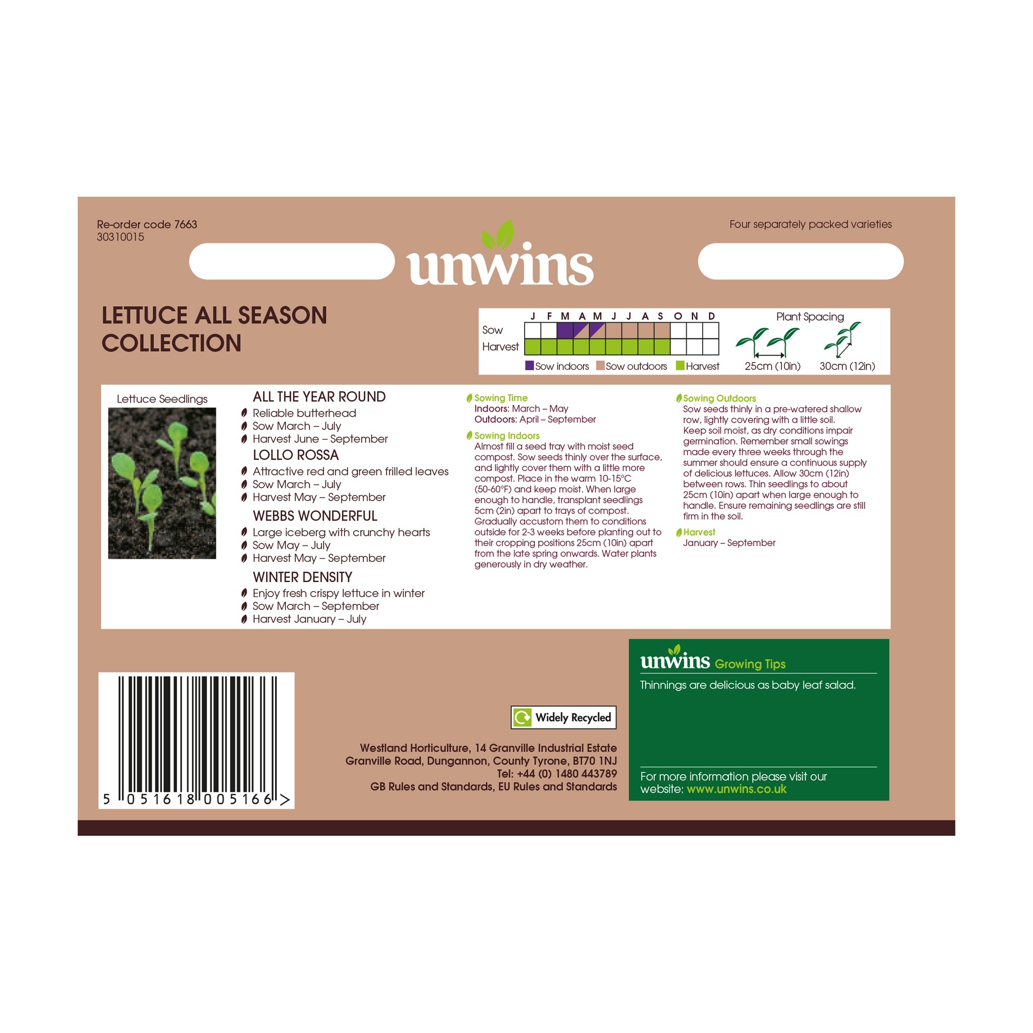 Unwins Lettuce All Season Collection Pack Seeds give you a reliable supply of delicious salad leaves.