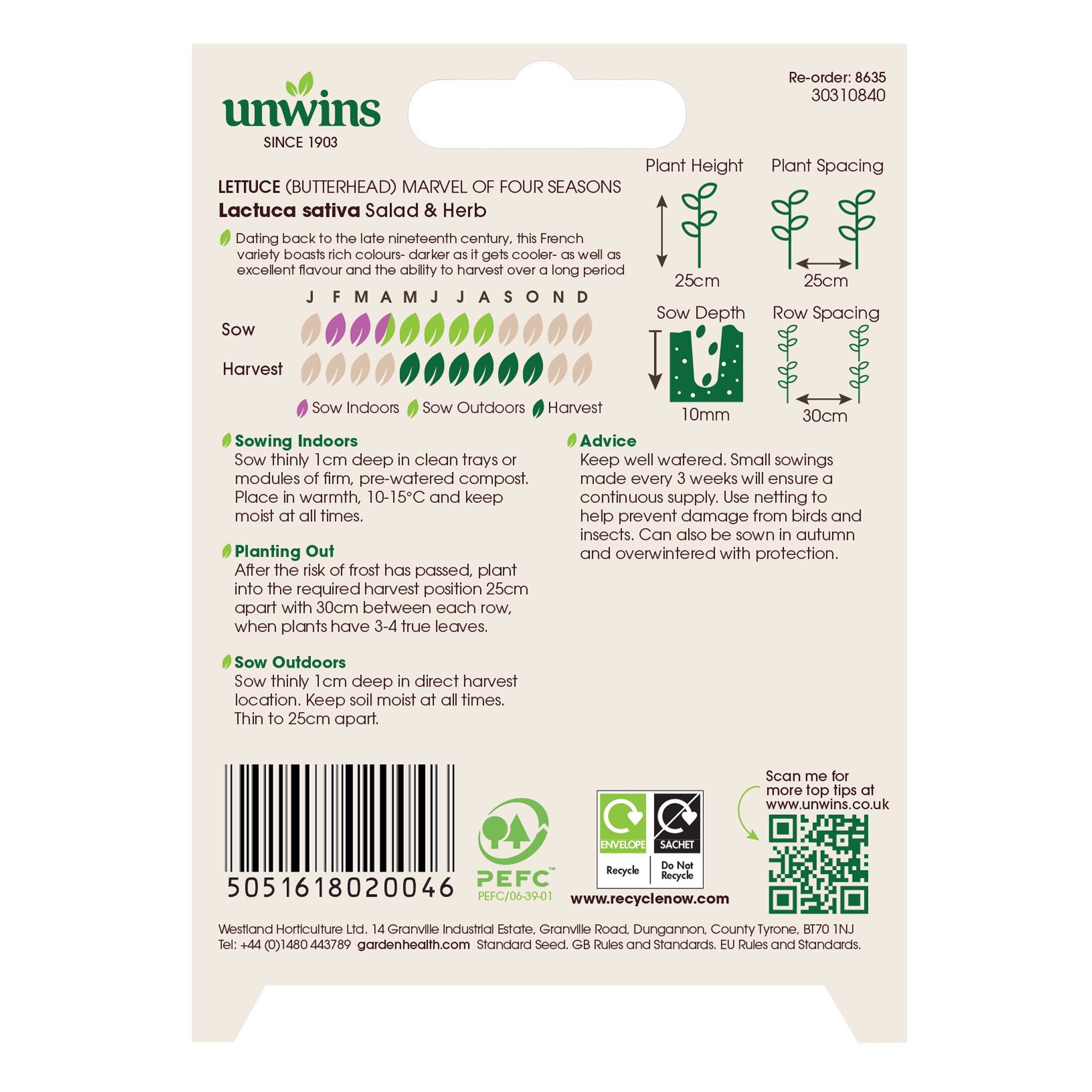 Keep well watered. Small sowings every 3 weeks will ensure a continuous supply. Use netting to protect from birds and insects. This heirloom French variety has attractive red and green leaves, rich colours that deepen in cooler weather, excellent flavour, and can be harvested over a long period. It can also be sown in autumn and overwintered with protection.
