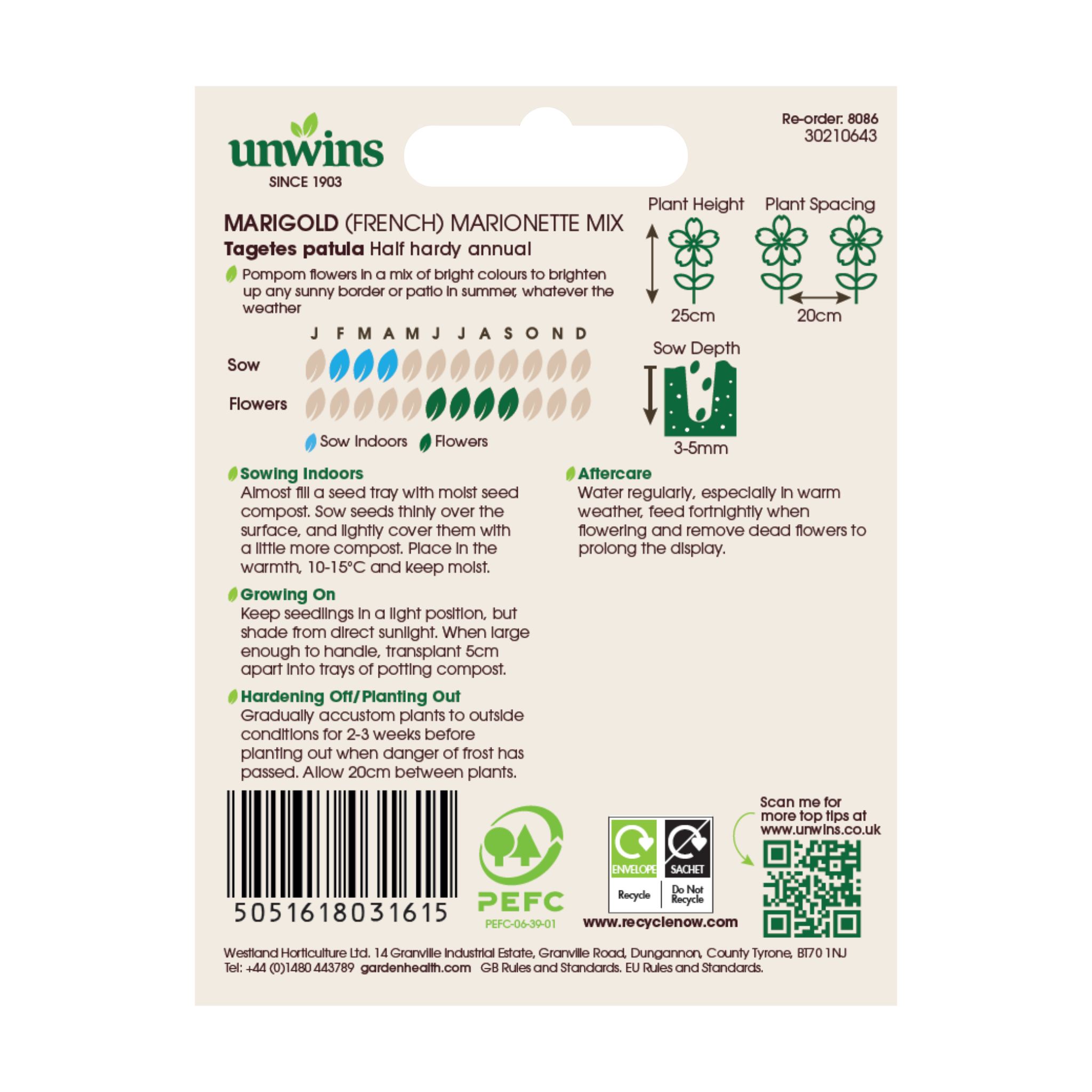 Gradually accustom plants to outdoor conditions for 2–3 weeks before planting out when the danger of frost has passed. Allow 20 cm between plants.