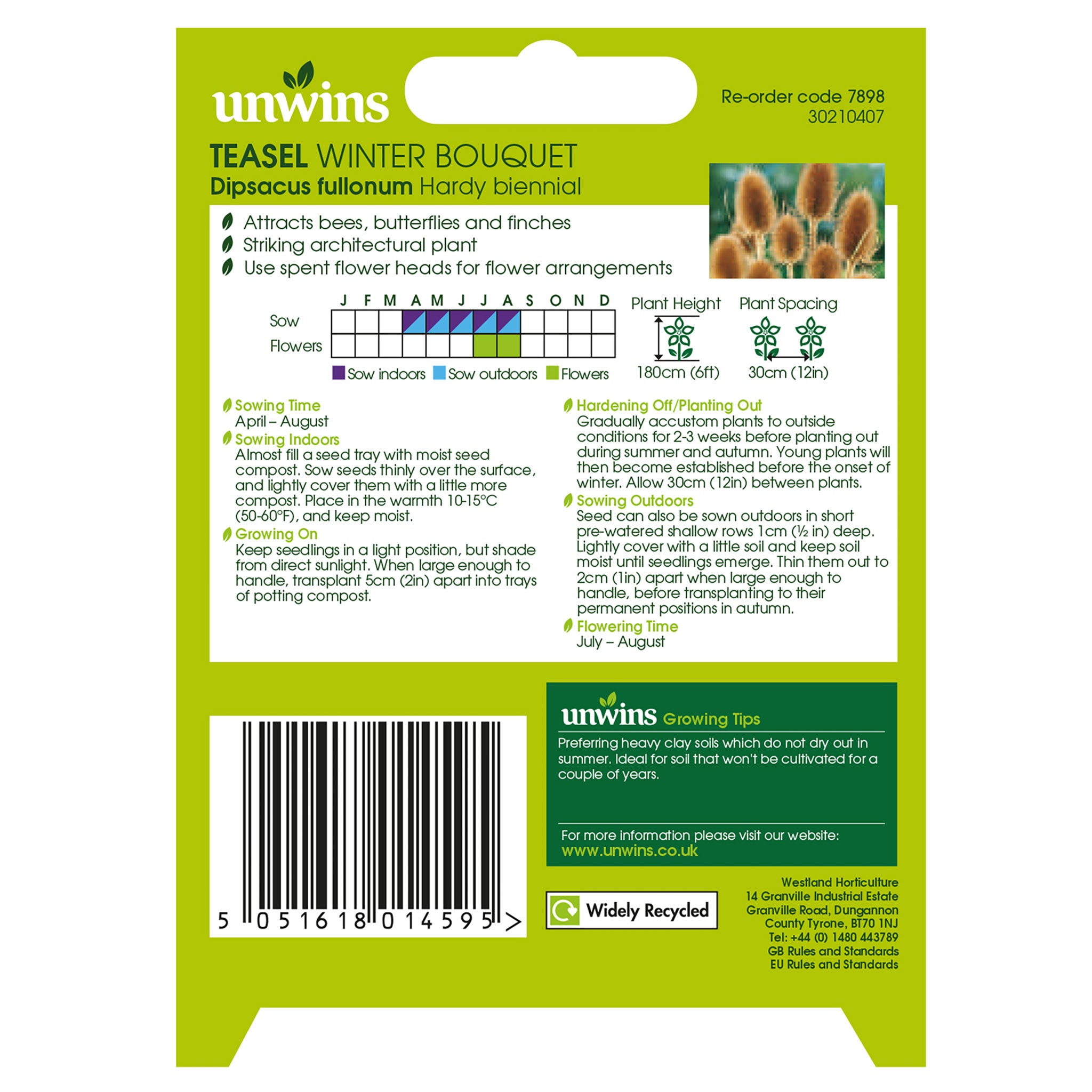 Nature's Haven Teasel Winter Bouquet Seeds produce a Biennial with striking architectural features.