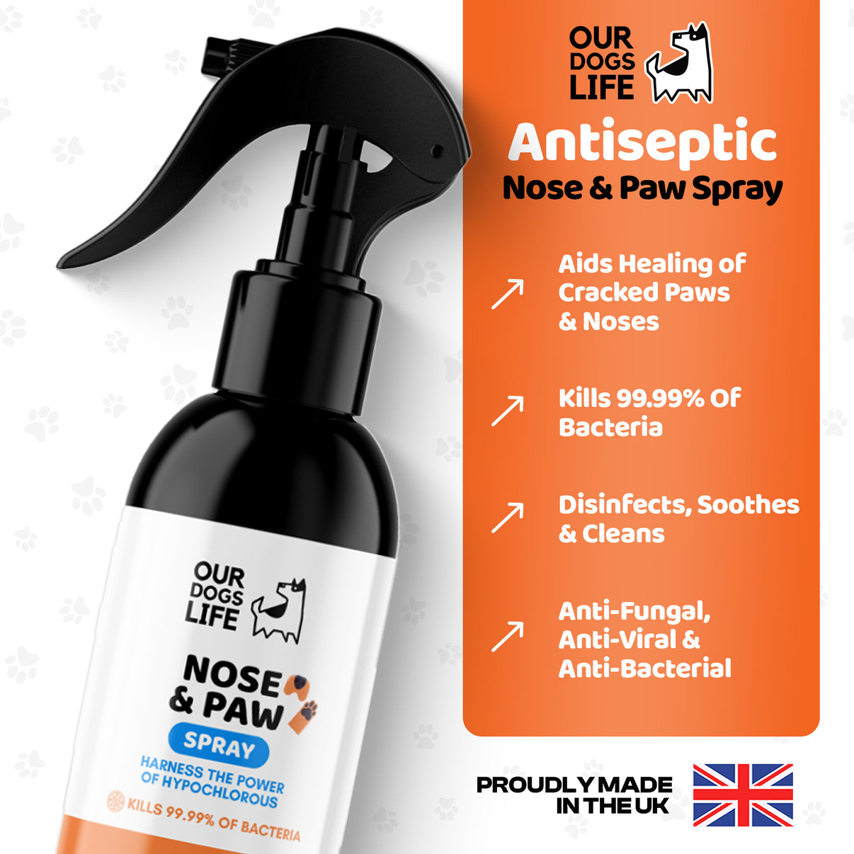 - OurDogsLife Nose & Paw Spray, a groundbreaking solution designed to heal and protect your dogs paws and nose.