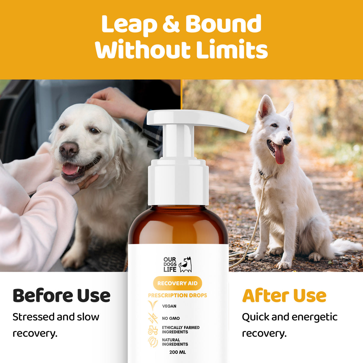 - Our Dog Recovery Supplement Drops offer a multitude of benefits to support your dog's recovery journey: