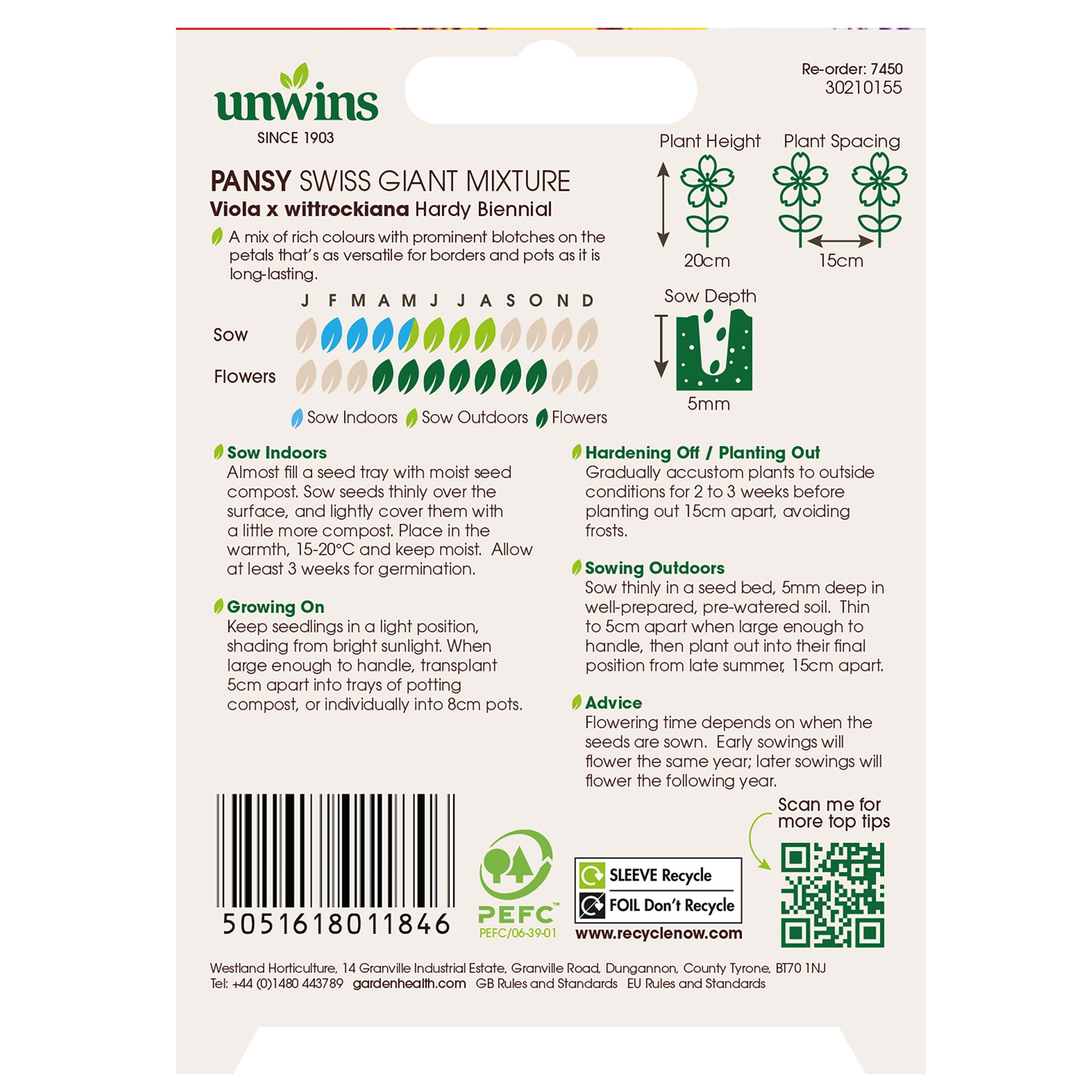 Unwins Pansy Swiss Giant Mixture is a selection of rich colours with a long flowering season.