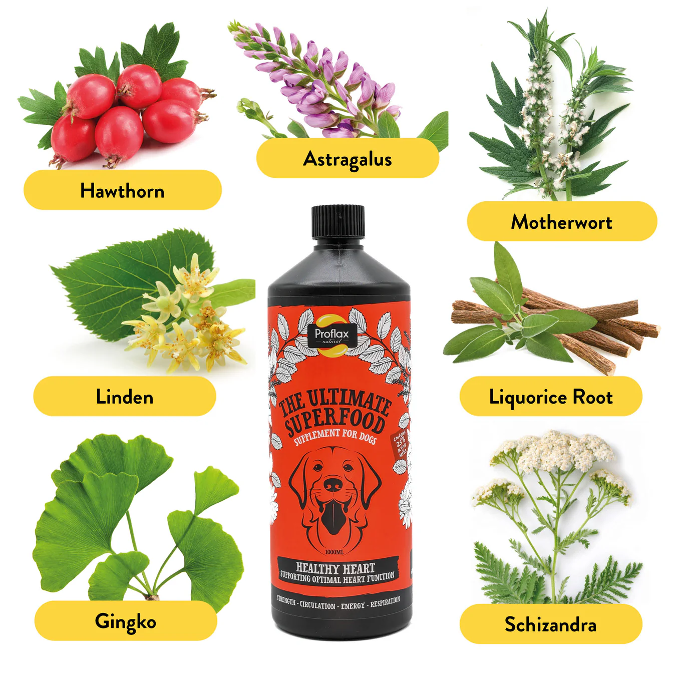 Proflax Healthy Heart is a 100% natural, ready-blended flaxseed oil & herbal tincture supplement. It specifically supports the health of the heart in dogs with congenital or degenerative heart conditions, or those that are genetically predisposed to heart problems. This holistic blend also supports overall general health & wellbeing.