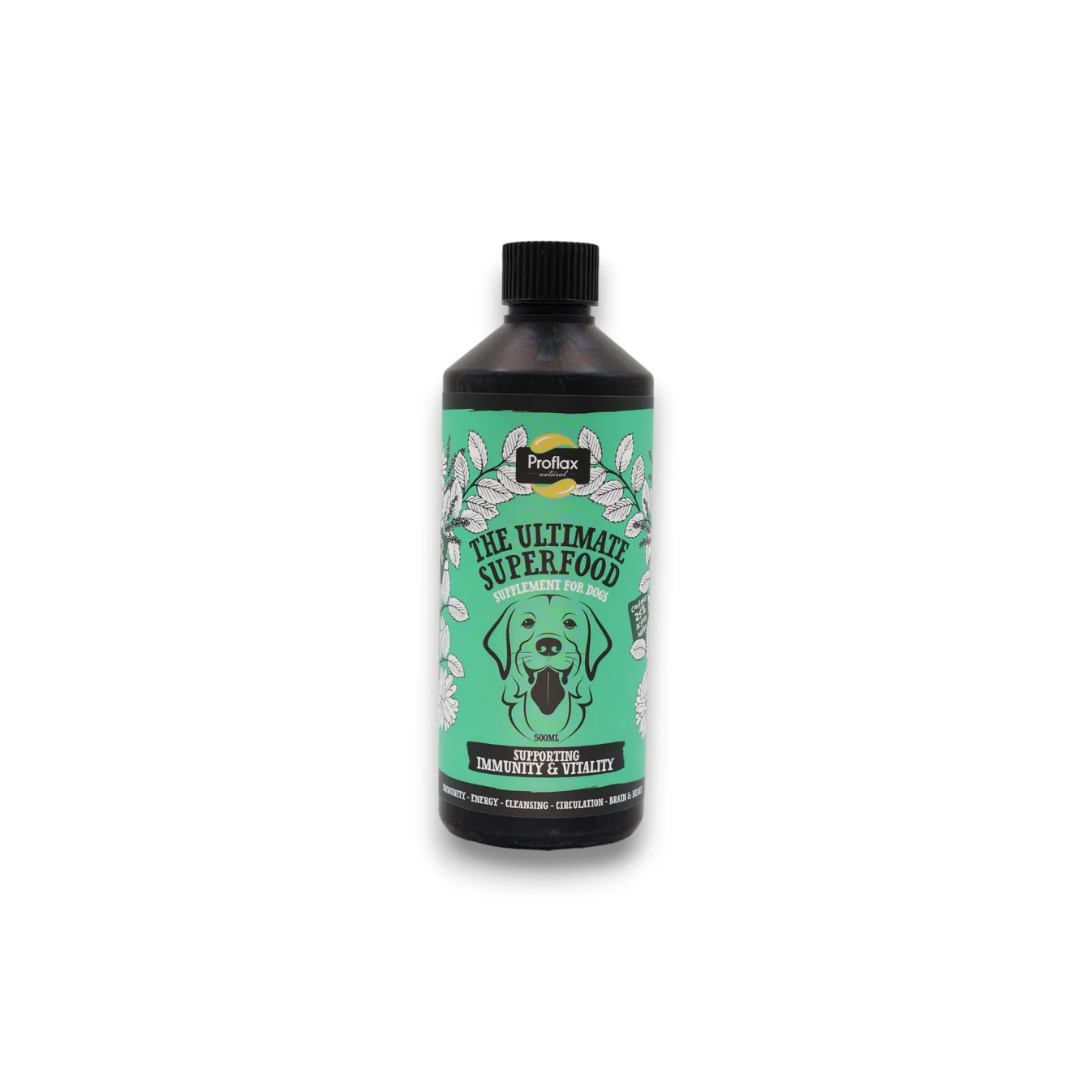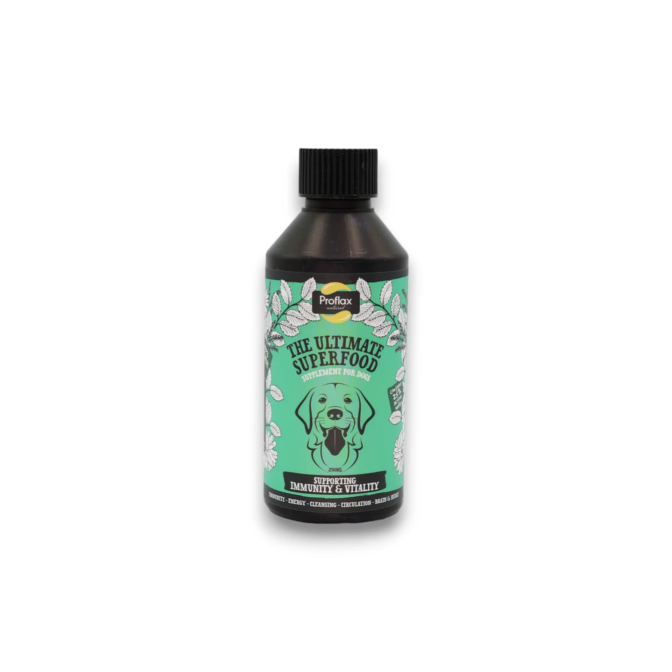 Proflax Immunity & Vitality is a 100% natural, ready-blended flaxseed oil & herbal tincture supplement. It specifically supports the immune system, whilst caring for all aspects of general health, keeping the body in harmony & balance for improved vitality. Ideal for dogs in need of a health boost; post surgery, injury or pups or as a pick-me-up when feeling under par. A great complete maintenance supplement for adult dogs.