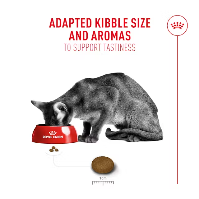 Royal Canin works with experts in veterinary nutrition to create dietary solutions that support optimal health for cats. We know that many cat owners struggle to find nutrition that their pet will accept. Picky eaters can be hard to please and often reject new food – making it difficult to ensure that their nutritional needs are met. Based on 4 years of research, ROYAL CANIN® Fussy is our highly palatable formula and provides a complete and balanced diet for picky eaters. Our tailor-made nutrition has been tested and approved by owners of fussy cats*, with 86% satisfied that it has improved their pet’s eating habits. This diet is also suitable for sterilized cats. Highly appetizing To appeal to the most selective cats, ROYAL CANIN® Fussy nutrition is carefully crafted with a precise balance of ingredients, tempting aromas, and tasty kibble texture. Urinary health support Formulated to help support and maintain a healthy urinary system. Weight maintenance Fussy cats can eat very little throughout the day. To meet their daily nutritional requirements, ROYAL CANIN® Fussy is an energy-dense and high-protein formula. Made with a protein content of 40% and maximized for taste appeal, this complete and balanced diet helps support a healthy weight. To improve palatability and mealtime for picky eaters, the Fussy formula combines our 3 former Exigent diets – Savour, Aroma, and Protein into one delicious product: ROYAL CANIN® Fussy. Transitioning your cat from one diet to another should be a smooth and gradual process over a 7- to 10-day period. Please follow the on-pack feeding guide to ensure the correct rationing amounts. *Royal Canin Internal Study with 122 cat owners.