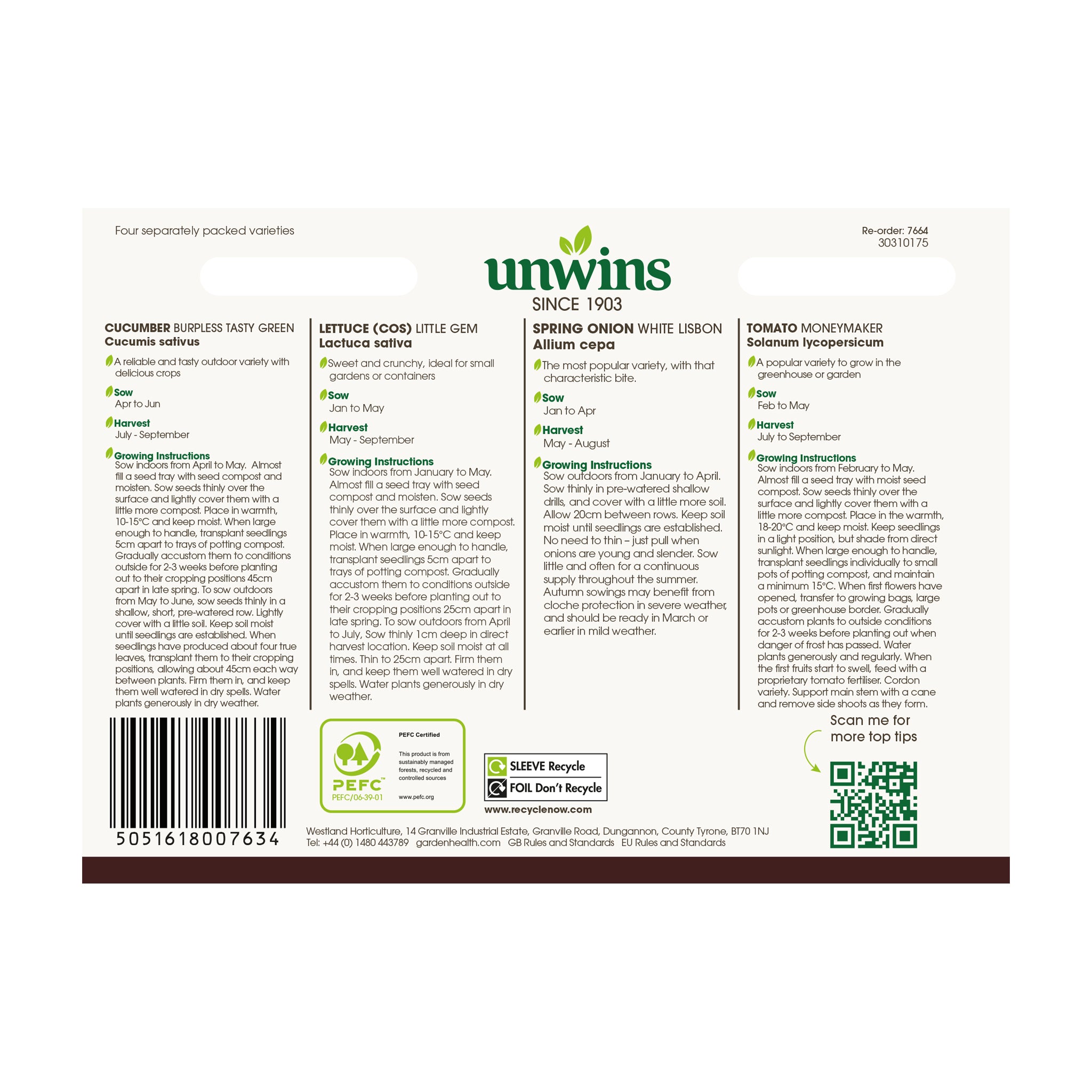 Unwins Salad Classic Collection Pack Seeds includes four of the nation's favourite salad vegetables. Classic and tasty, this collection includes the Burpless tasty green cucumber, Little Gem lettuce, White Lisbon spring onion and Moneymaker tomato.