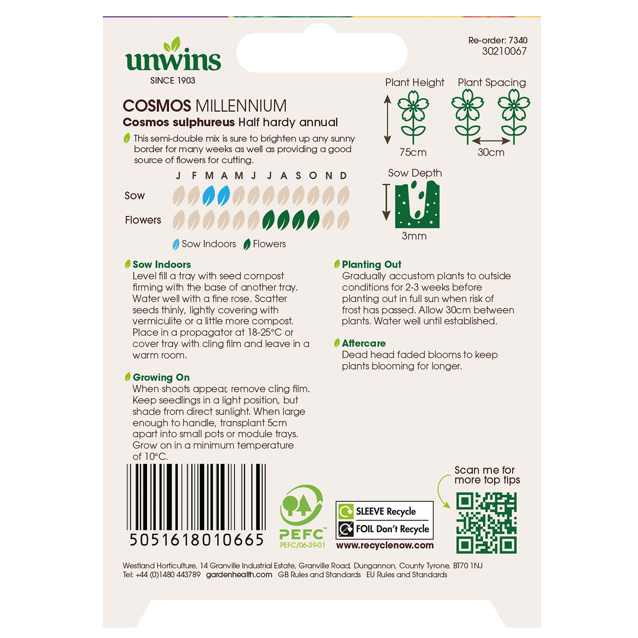 Fill your garden with the warm glow of sunset tones all summer long with the Unwins Cosmos Sunset Seed Bundle. This radiant collection features cosmos varieties in rich burgundy, antique salmon, fiery oranges, soft yellows, and glowing peach-pinks, perfect for creating a warm, sunlit border that flowers for months.