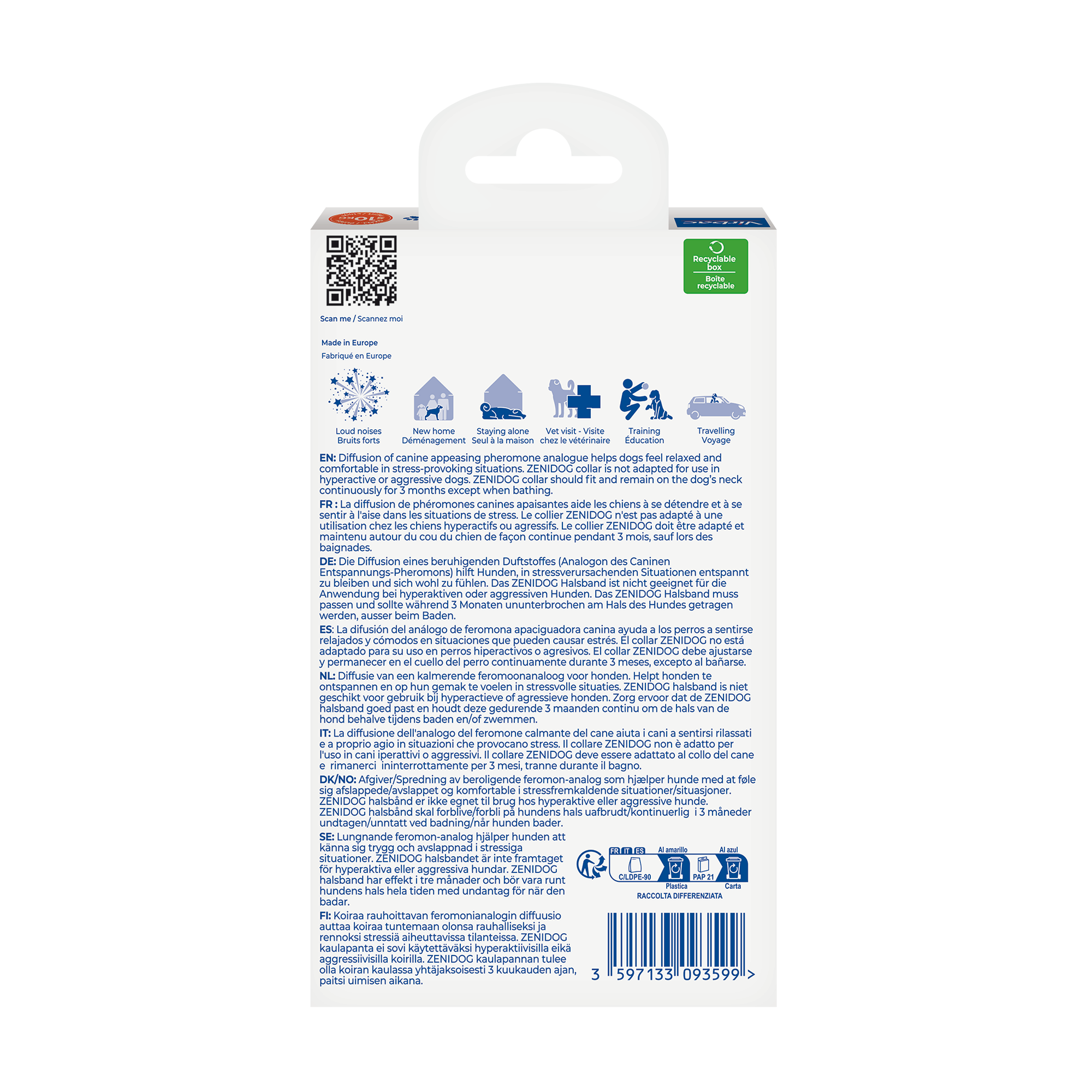 Designed for everyday use, the collars are long-acting, slowly releasing canine appeasing pheromones and are proven to help reduce stress in dogs. Simply leave the collar on your dog continuously for 3 months.