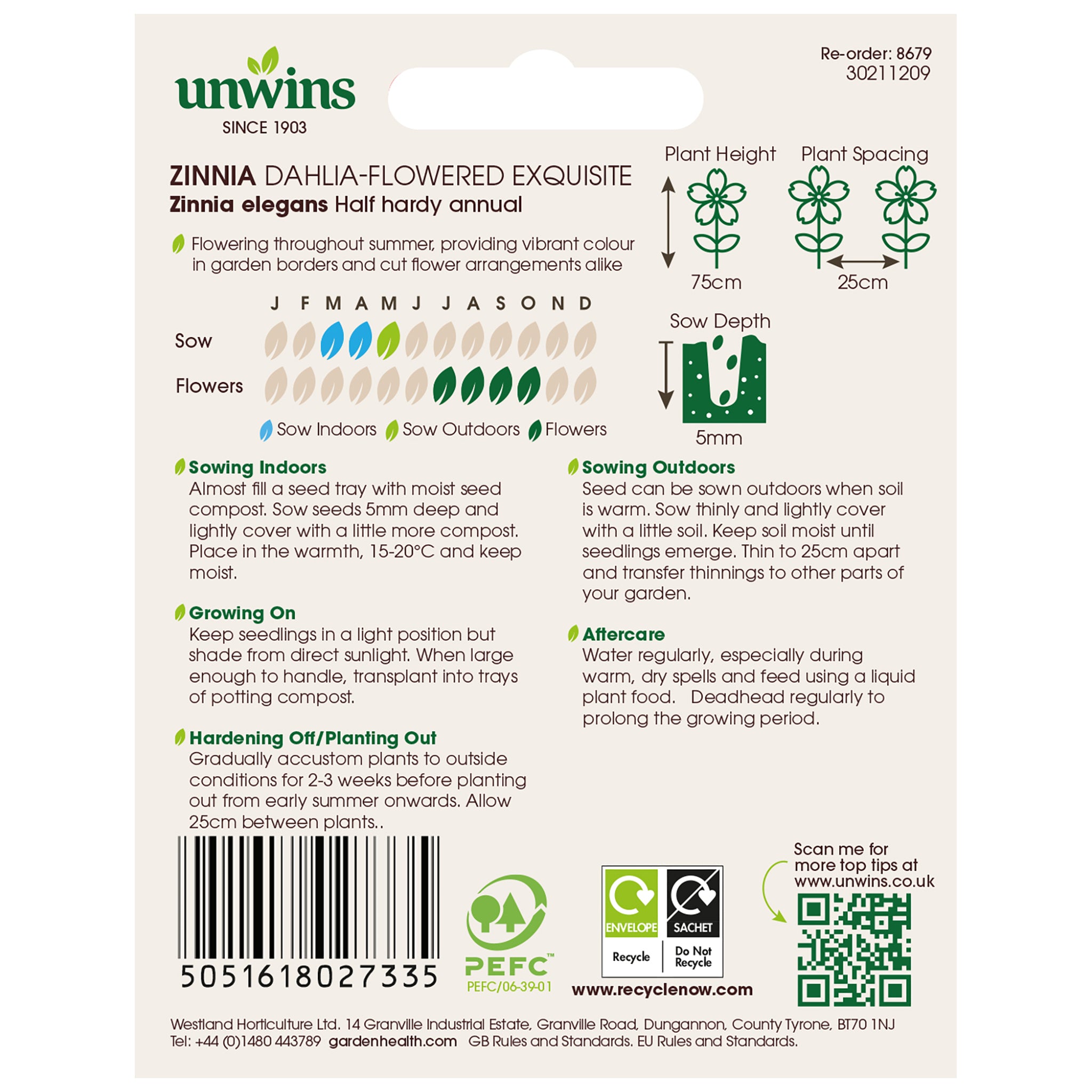 Gradually accustom plants to outside conditions for 2–3 weeks before planting out from early summer onwards. Allow 25 cm between plants.